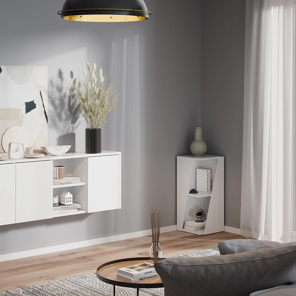 - Erleben Sie die Vorzüge des platzsparenden Standregals. Das moderne, schmale, weiße Design ergänzt perfekt jedes Interieur.