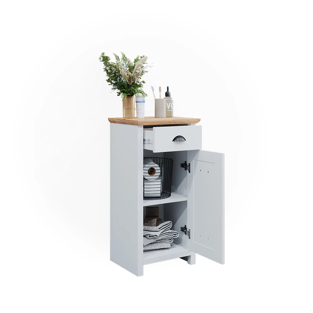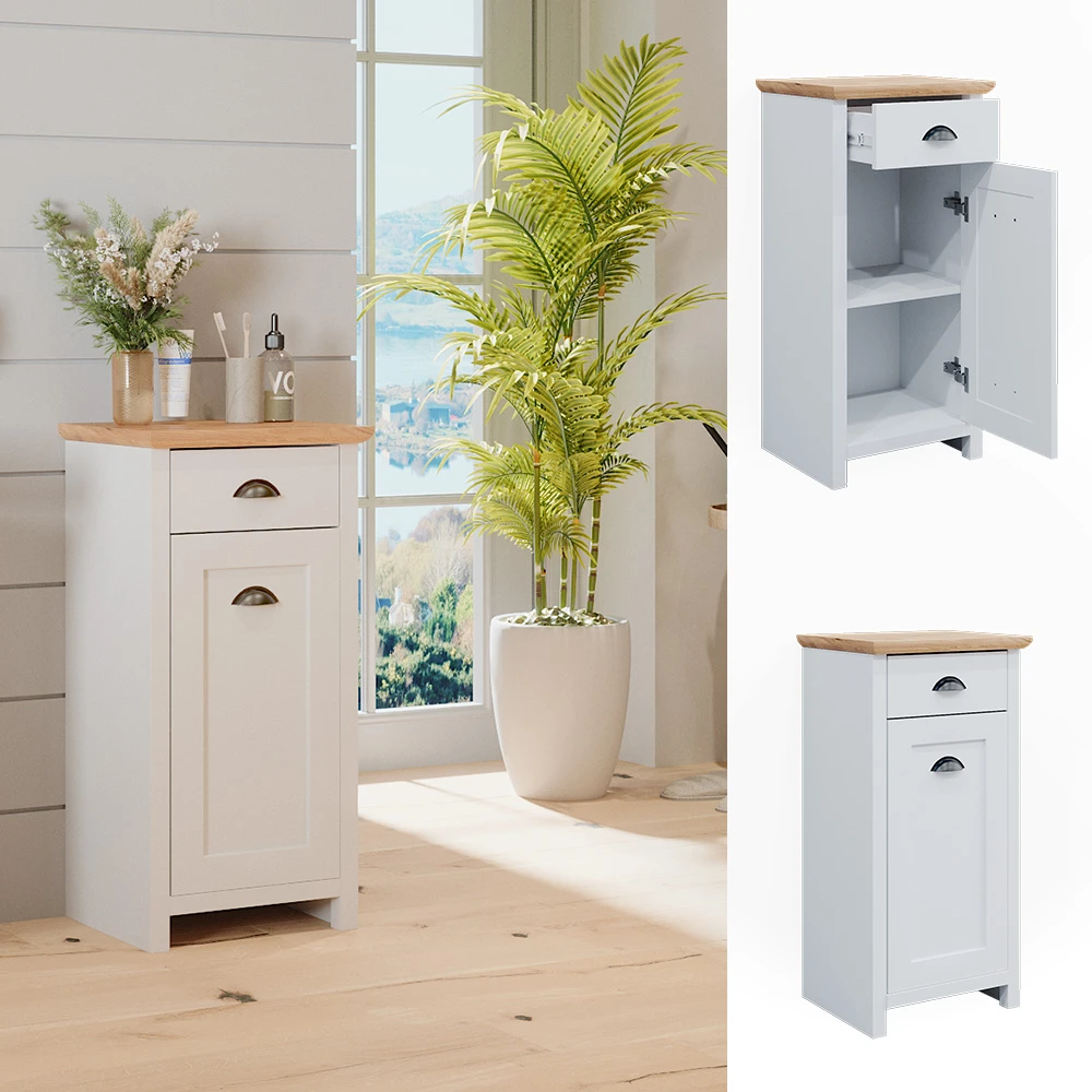- MATERIAL: Der Badschrank besteht aus pflegeleichter Spanplatte 16 mm, mit einer Melaminharzbeschichtung.