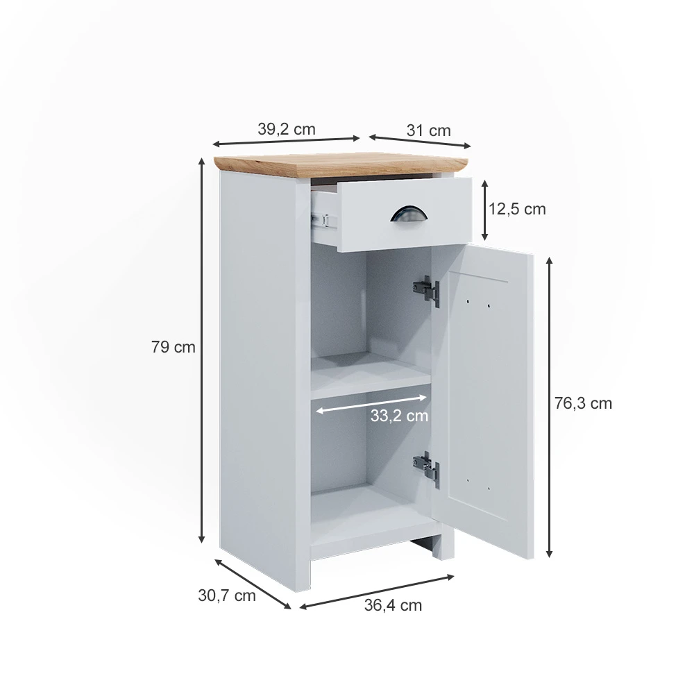 - MAßE: Das Badezimmermöbel hat eine Breite von 39,2 cm, eine Höhe von 79 cm und eine Tiefe von 31 cm. Alle detaillierten Größen sind auf den Fotos angegeben.