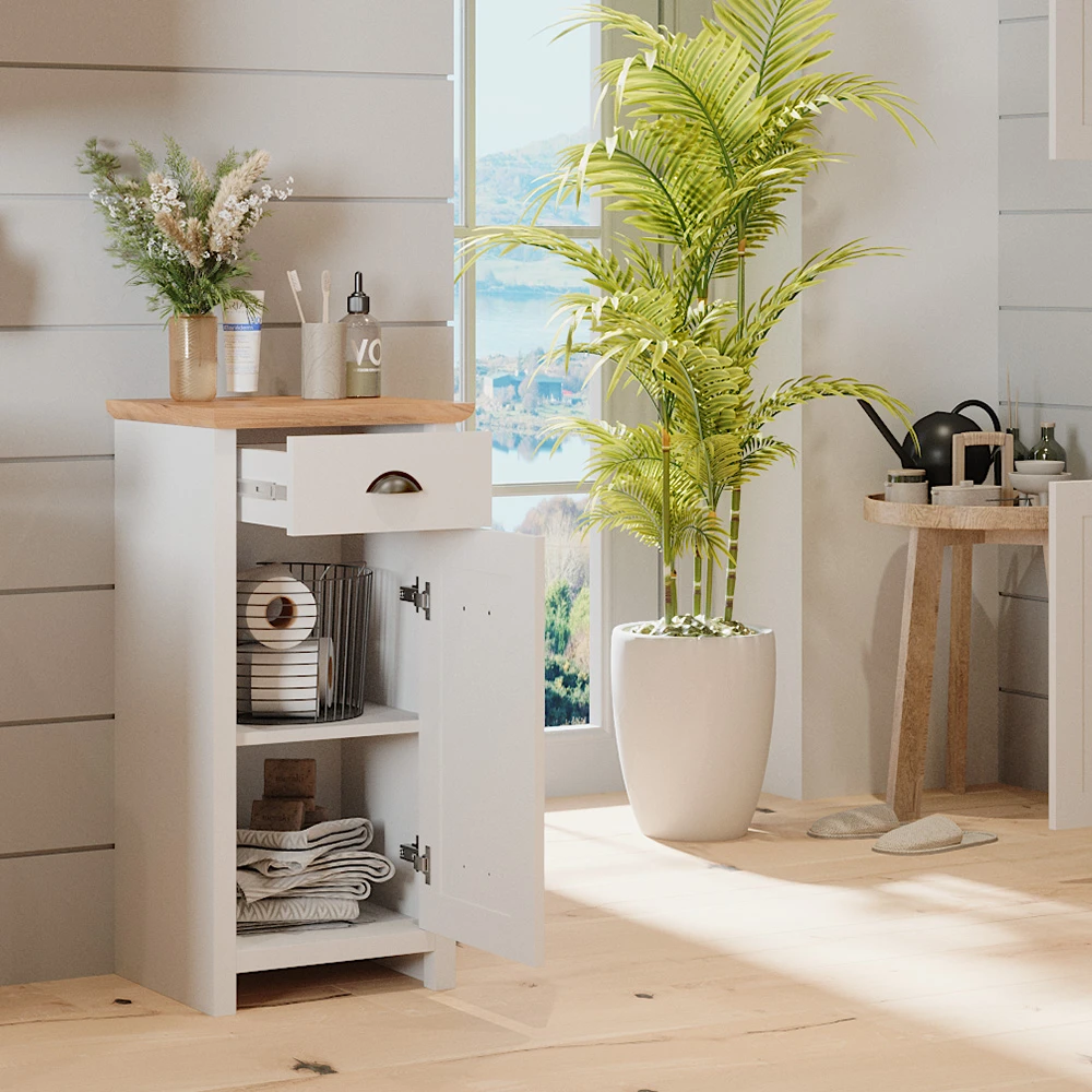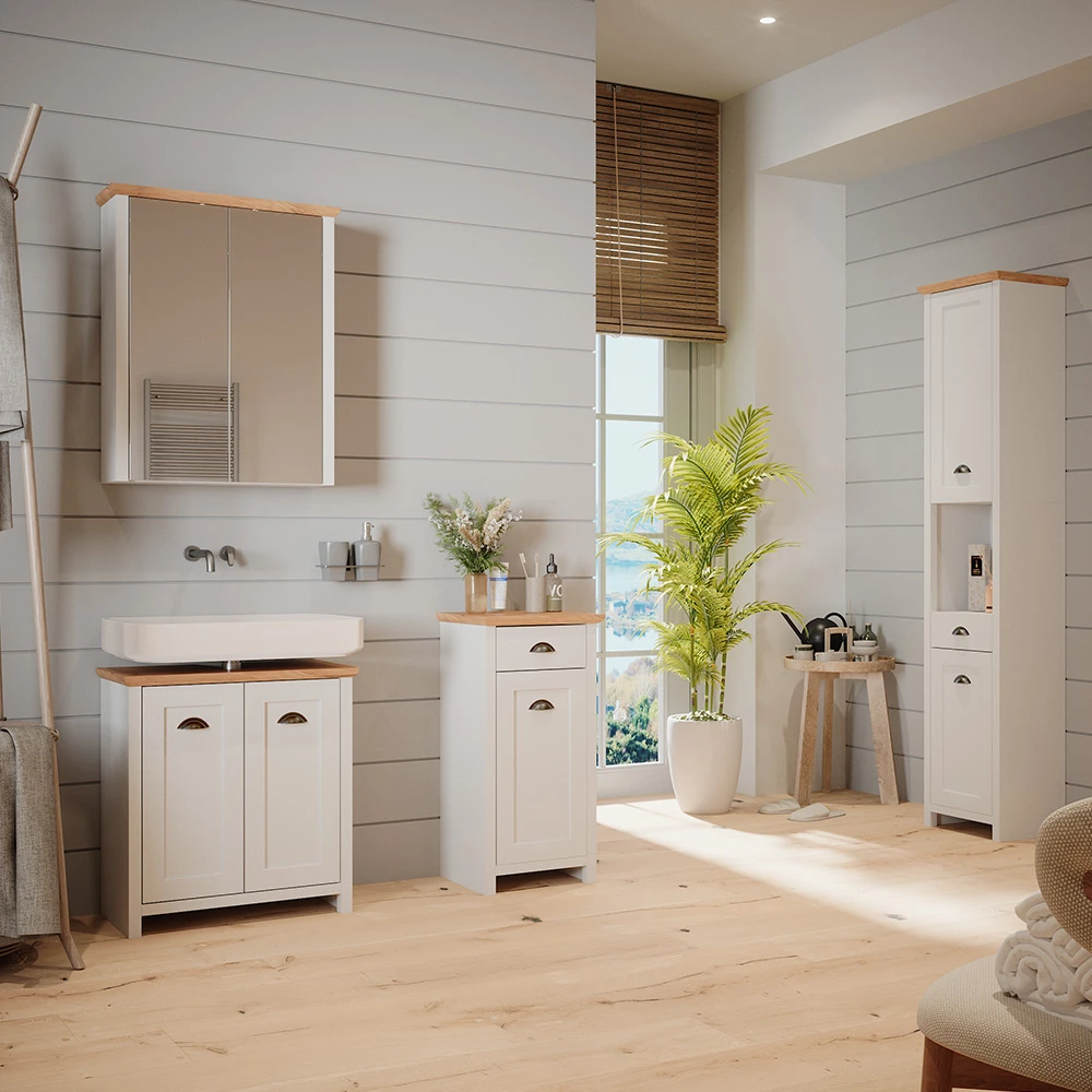 Der Midischrank Nino ist das perfekte Möbelstück für dein Badezimmer. Er bietet ausreichend Stauraum für all deine Kosmetik- und Hygieneartikel und sorgt zugleich für ein harmonisches Ambiente in deinem Bad. Das hochwertige Material und die sorgfältige Verarbeitung machen diesen Badezimmerschrank zu einem langlebigen und zuverlässigen Begleiter im Alltag. Ob du dich morgens für den Tag bereitmachst oder abends entspannt ein warmes Bad geniesst, der Badschrank Nino wird dich nicht enttäuschen. Investiere in ein Stück Qualität, das dich jeden Tag aufs Neue begeistern wird.