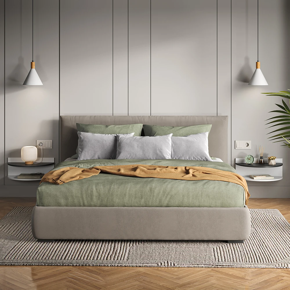 Erleben Sie die zeitlose Ästhetik. Das elegante Design verleiht Ihrem Schlafzimmer eine ansprechende Atmosphäre. Der Nachttisch bietet zwei praktische Ablagen, die ausreichend Stauraum für Ihre persönlichen Gegenstände bieten. Ordnung und Funktionalität in einem. Die Oberfläche lässt sich mühelos reinigen und bewahrt seine Schönheit. Ein Möbelstück, das lange erhalten bleibt. Die Montage ist unkompliziert und zeitsparend. In kürzester Zeit steht Ihnen Ihr neues Möbelstück zur Verfügung.