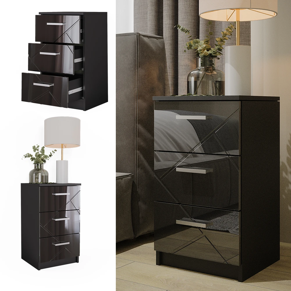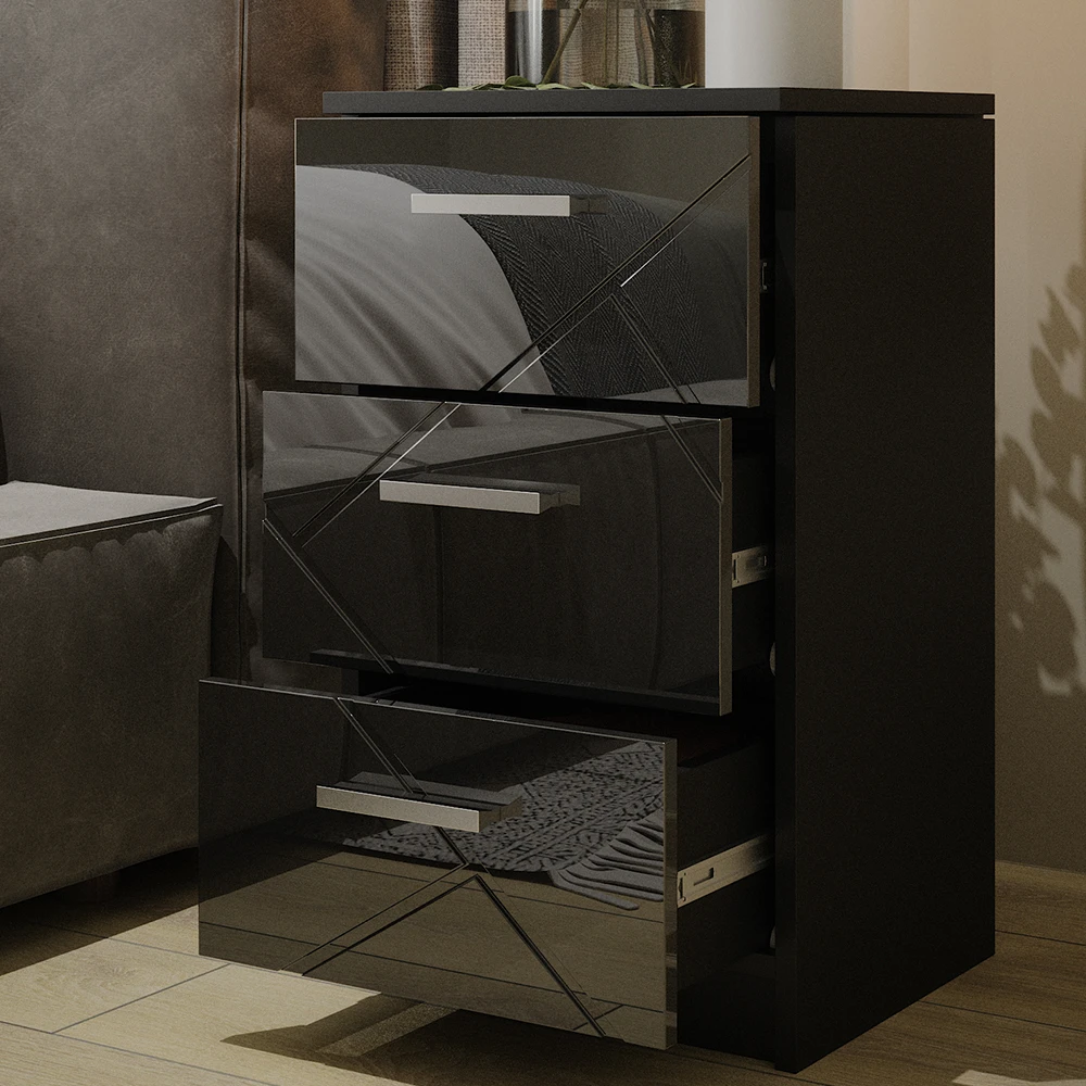 - Die Nachtkommode bietet Soft-Close-Schubladen und eine glänzende Front, perfekt für ein Boxspringbett. Eine stilvolle Ergänzung für Ihr Schlafzimmer!
