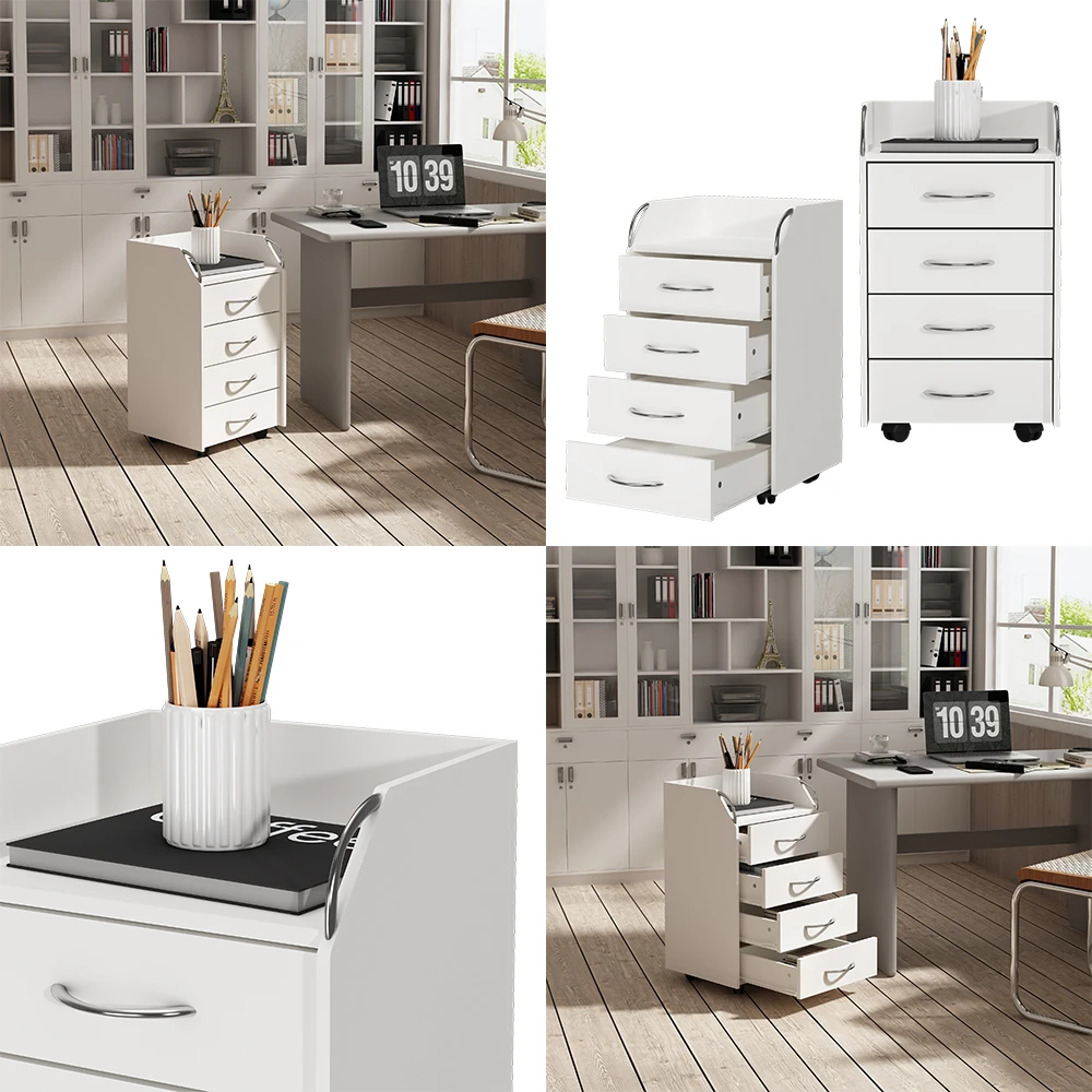 Mit 4 leichtgängigen Schubladen und einer zusätzlichen Ablage bietet der Rollcontainer eine optimale Organisation und Stauraum für Ihre Utensilien. Dank der 4 Schwenkräder lässt sich der Rollcontainer mühelos bewegen und flexibel am Arbeitsplatz platzieren. Die schlichte Optik des Rollcontainers fügt sich nahtlos in jede Büroumgebung ein und sorgt für eine elegante und aufgeräumte Atmosphäre. Mit seinem modernen Design ist der Rollcontainer nicht nur funktional, sondern auch ein stilvolles Möbelstück, das den Arbeitsplatz aufwertet.