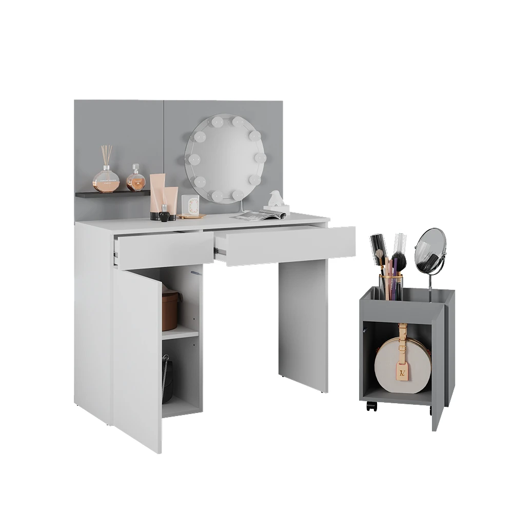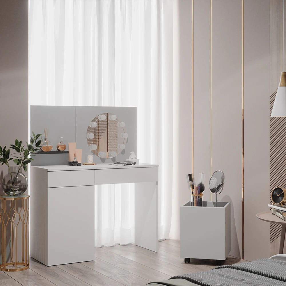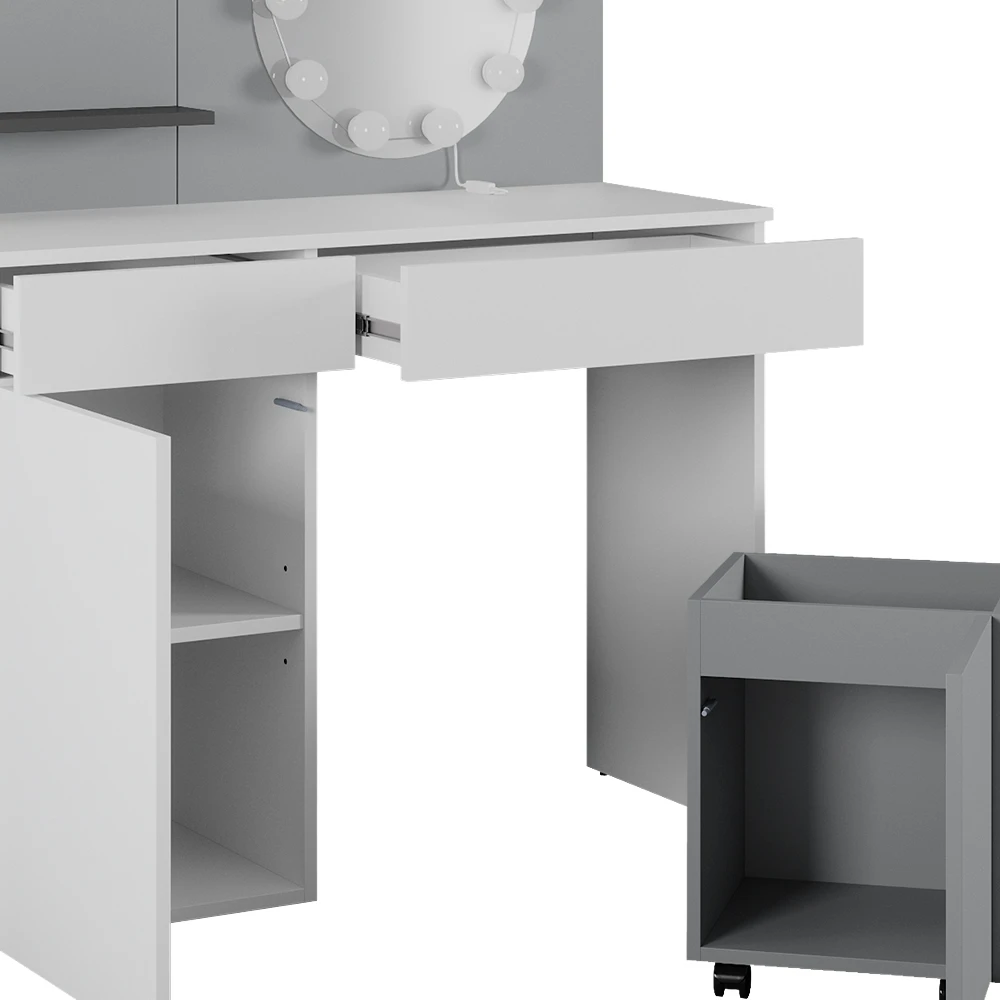 - LIEFERUMFANG: Schminktisch, Rollcontainer, LED-Lichterkette, Montageanleitung, Montagematerial