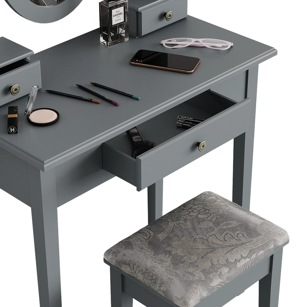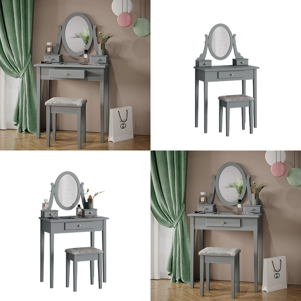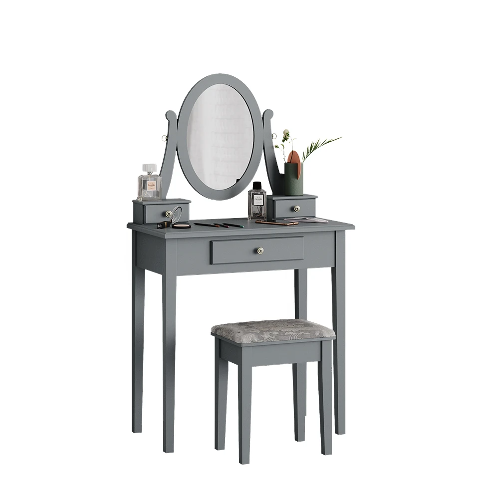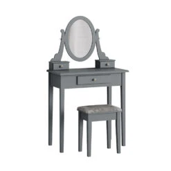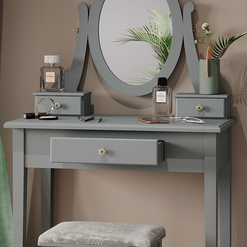 - Der Kosmetiktisch mit Spiegel bietet drei Schubladen und HolzFüße für zusätzliche Stabilität. Der oval geformte Spiegel ist eine schöne Ergänzung für das tägliche Schminken.