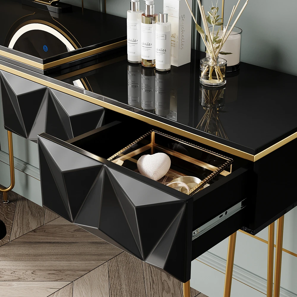Die Hochglanzoptik verleiht Ihrem Schminktisch eine luxuriöse Ausstrahlung.