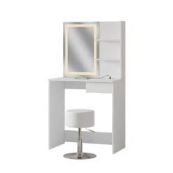 Der LED-Spiegel, der in dem Schminktisch integriert ist, fügt jedem Raum sowohl Funktionalität als auch Stil hinzu. Die Beleuchtung durch das LED-Licht bietet verbesserte Sichtbarkeit und erleichtert das Auftragen von Make-Up, das Stylen der Haare oder das Abschließen von Pflegeaufgaben mit Präzision.