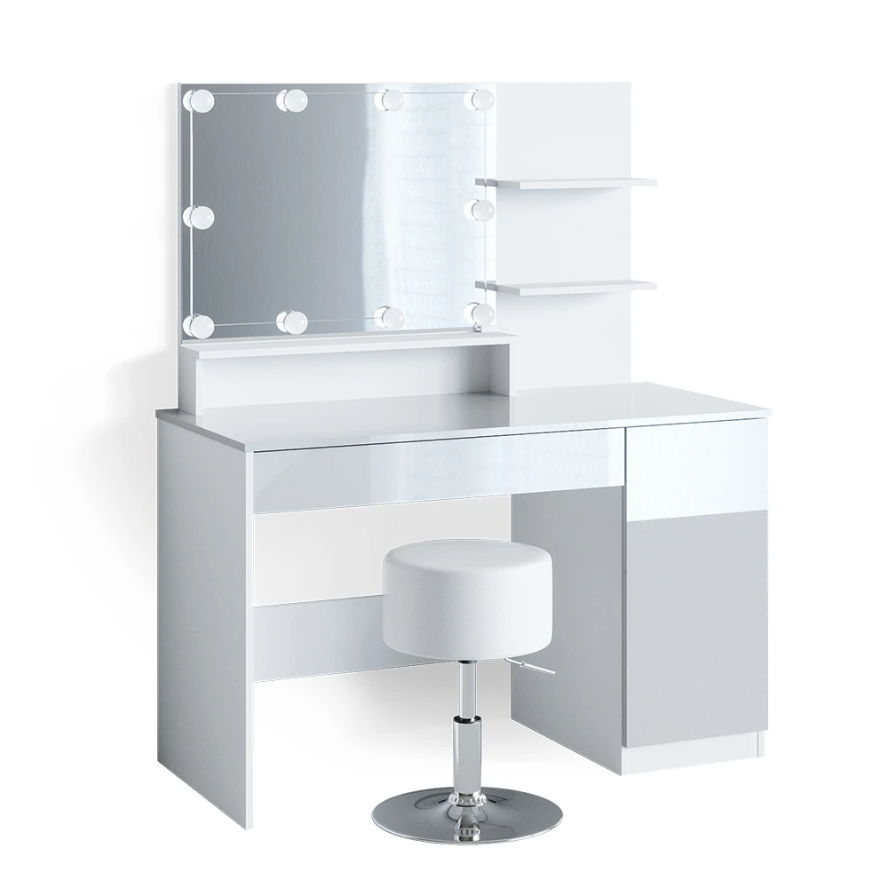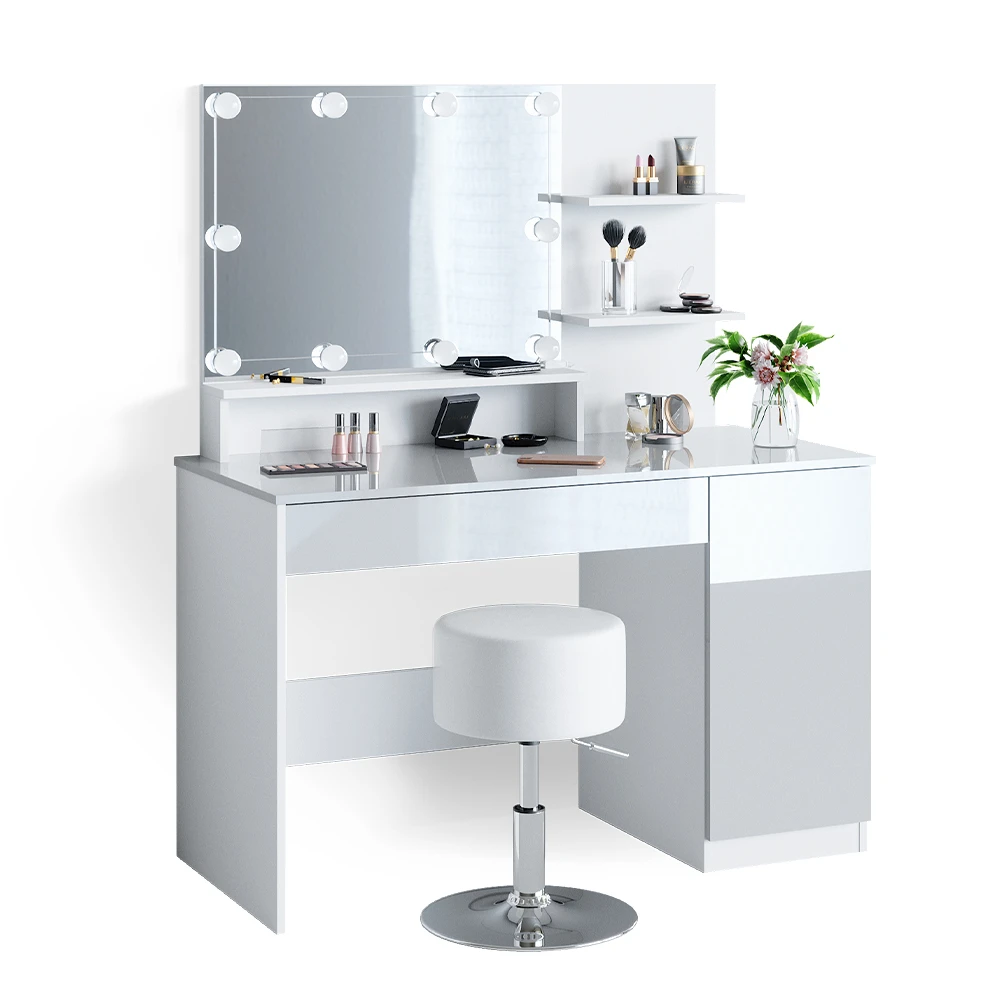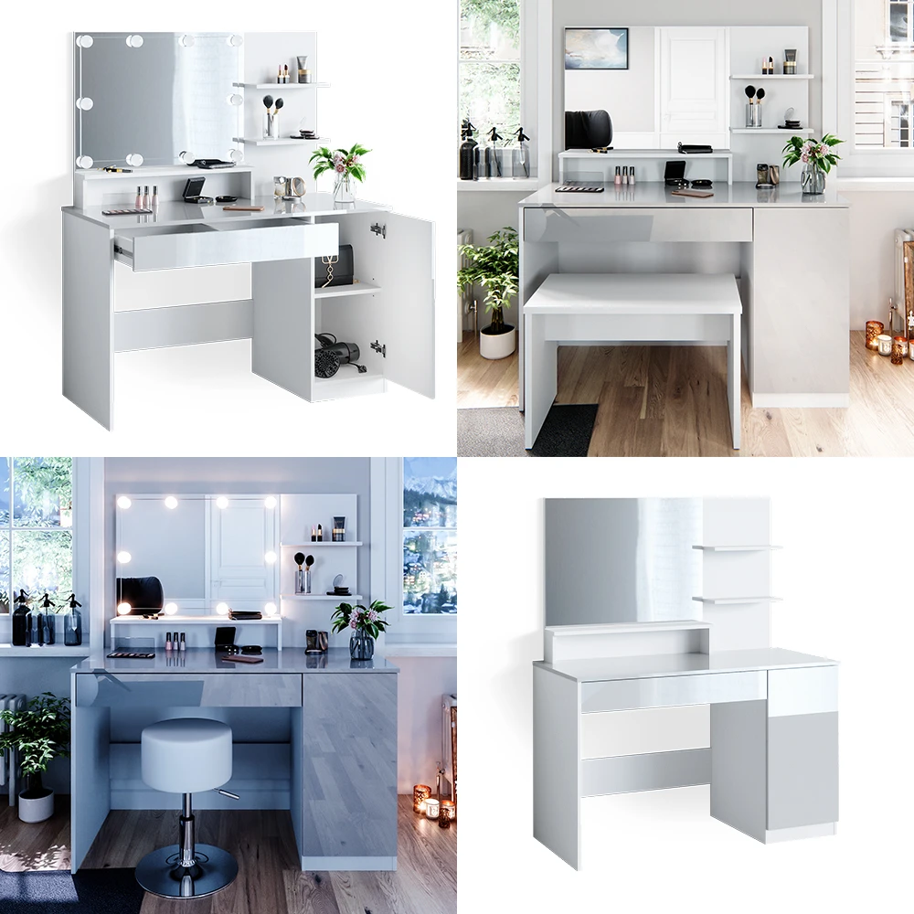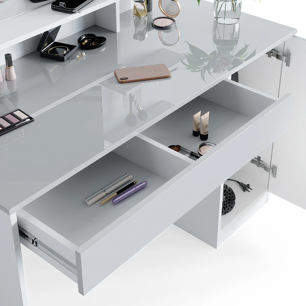 - Kosmetiktisch mit Spiegel bietet mehrere offene und geschlossene Ablagen sowie einen großen rechteckigen Spiegel. Ist er perfekt für das Schminken und Styling.