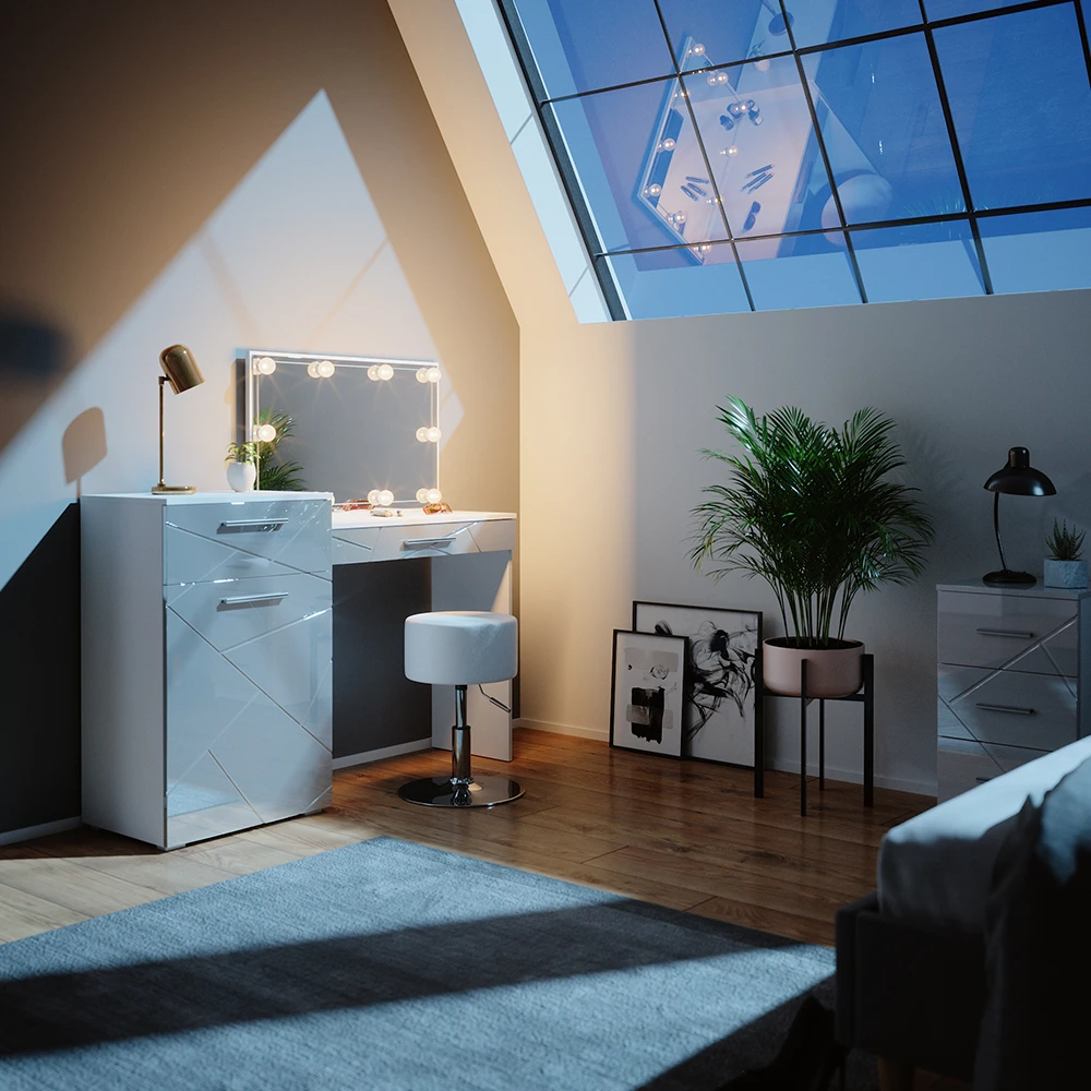 - Unsere Frisierkommode mit Beleuchtung und Hocker „Irma“ ist eine gute Entscheidung für alle, die sich optimal stylen möchten.