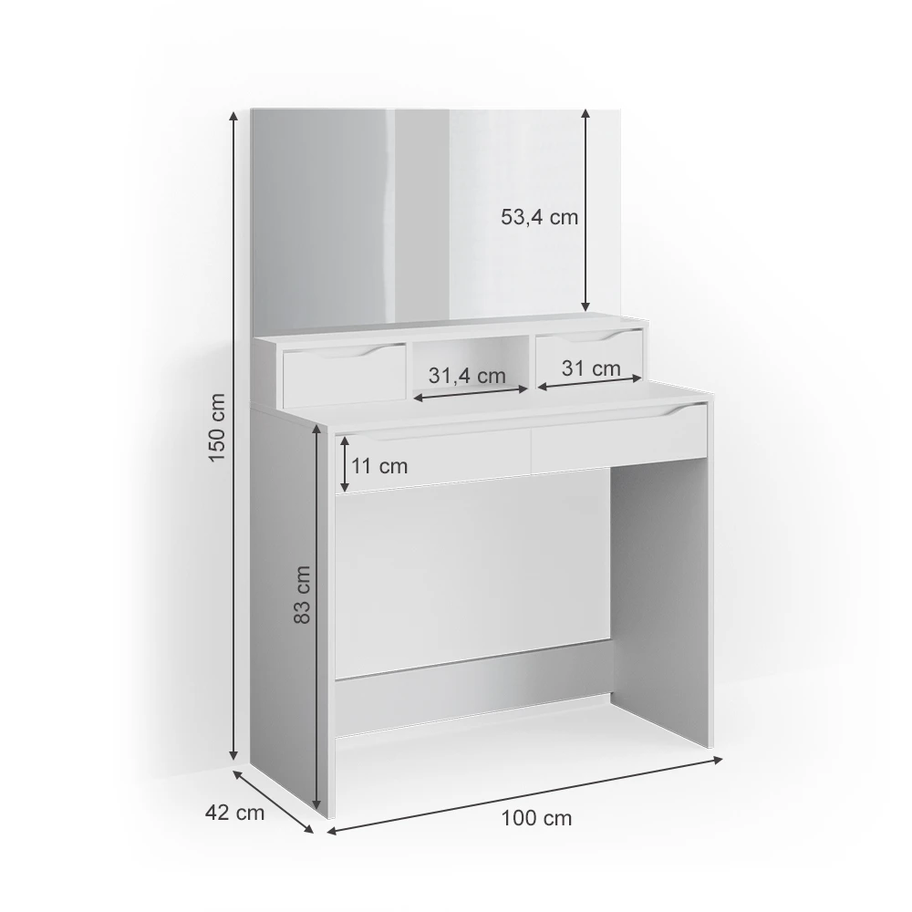 Schminktisch „Ruben“ Weiß 100 Cm Vicco
