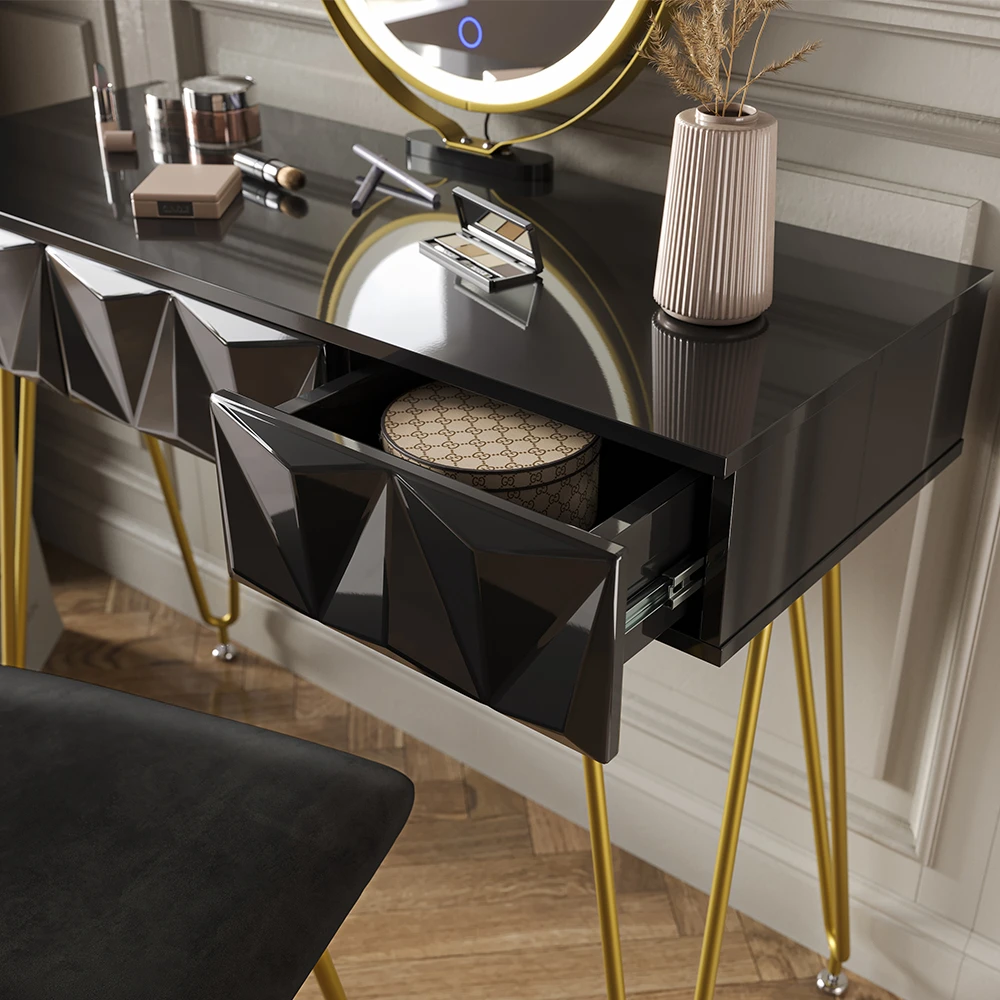 Die Hochglanzoptik des Schminktisches verleiht Ihrem Raum eine stilvolle Note.