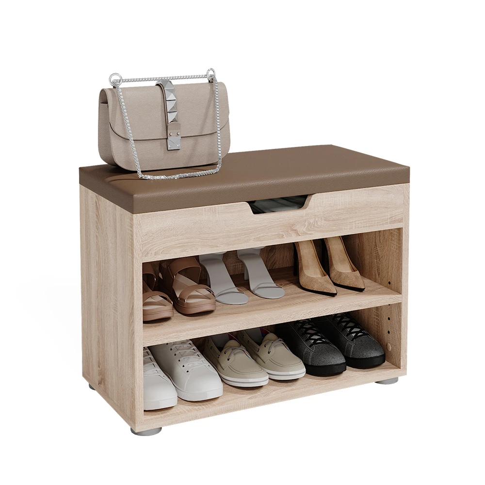 - MATERIAL: Das Schuhregal mit Sitzfläche besteht aus pflegeleichter Spanplatte 16 mm, mit einer Melaminharzbeschichtung.