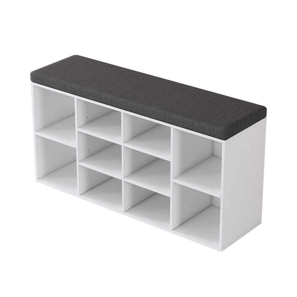 - MATERIAL: Das Schuhregal mit Sitzfläche besteht aus pflegeleichter Spanplatte 16 mm, mit einer Melaminharzbeschichtung.