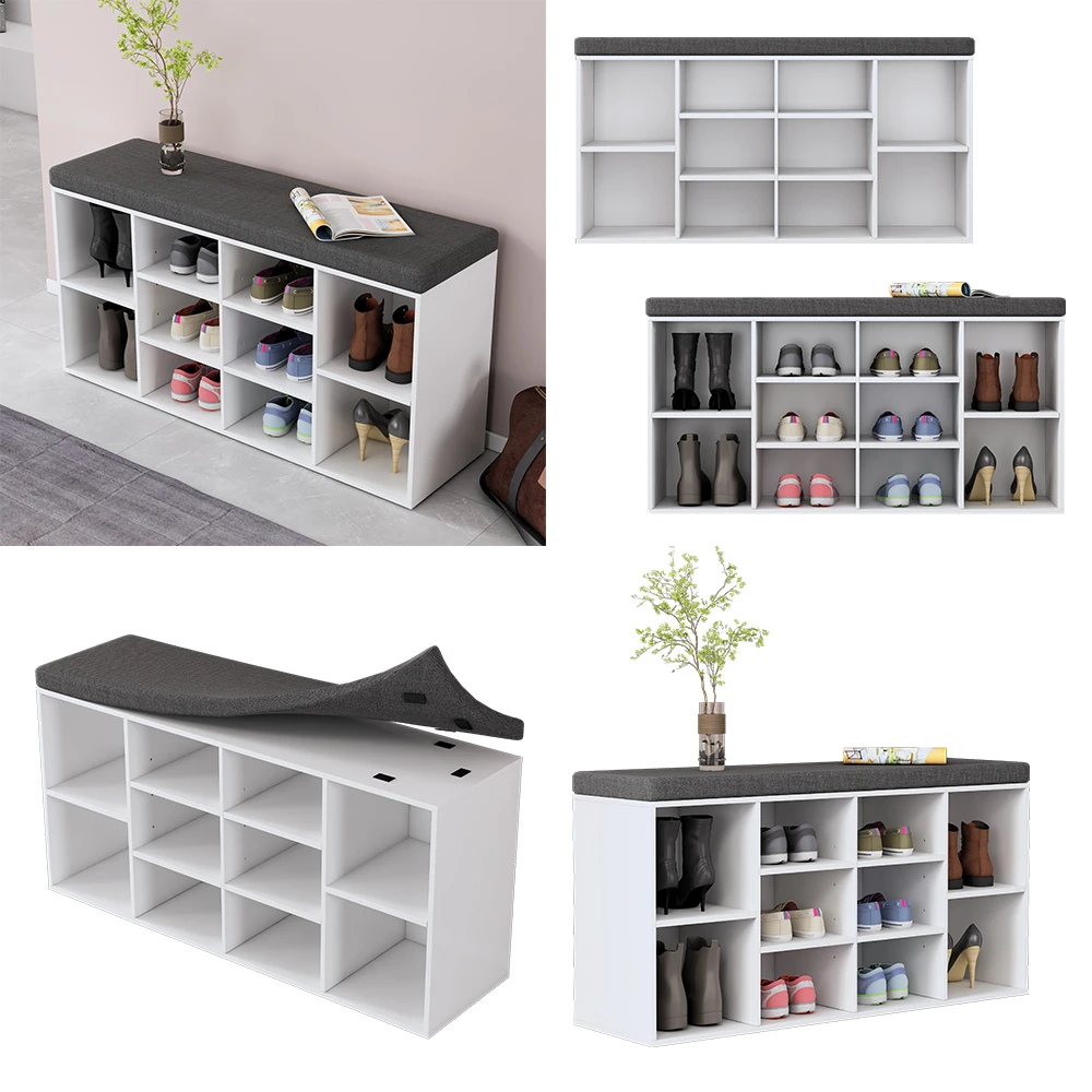- Mit der schlichten Optik fügt sich das moderne Design des Schuhregals perfekt in jeden Raum ein. Die Schuhbank mit Auflage ermöglicht eine platzsparende und ordentliche Aufbewahrung Ihrer Schuhe.