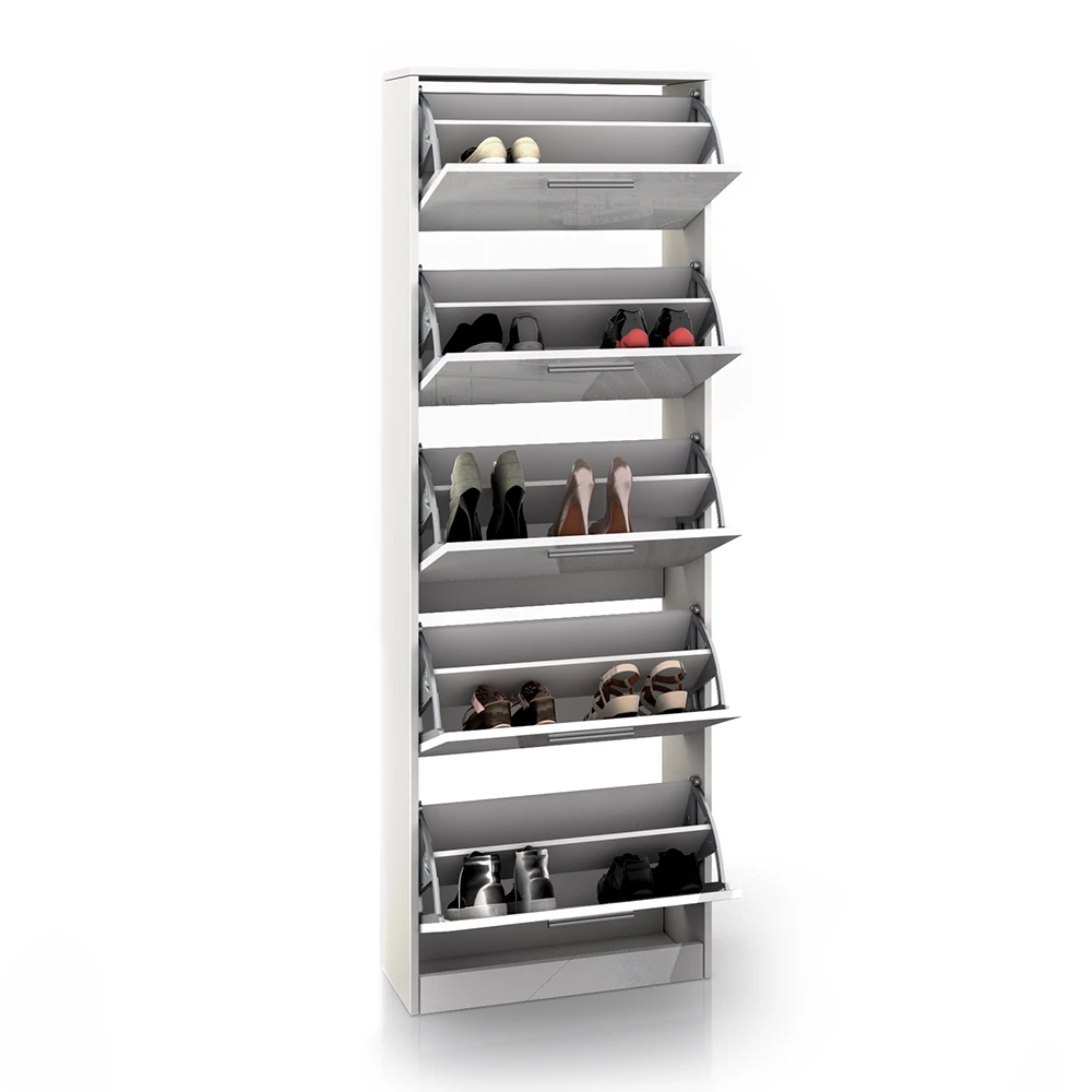 Der Schuhkipper aus der Gizmo Collection ist die perfekte Wahl für Menschen, die einen modernen und praktischen Flurschrank suchen. Dieses Schuhregal bietet reichlich Platz für Ihre Lieblingsschuhe und ermöglicht es Ihnen, Ihre Schuhe ordentlich und platzsparend zu verstauen. Mit fünf klappbaren Schuhregalen ist dieser Schuhschrank ein tolles Beispiel für Design und Funktionalität. Dieser Schuhkipper ist kompatibel mit anderen Artikeln der Gizmo Collection und bietet Ihnen die Möglichkeit, ein vollständiges Set von Möbeln zu erhalten. Stilvoll und nützlich – der Schuhkipper von Gizmo lässt keine Wünsche offen. Investieren Sie in dieses unverzichtbare Möbelstück und verabschieden Sie sich von unordentlichen Schuhsammlungen im Flur.