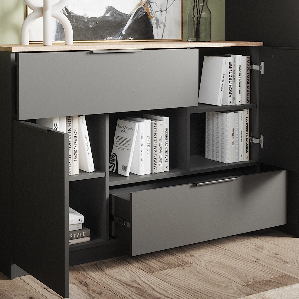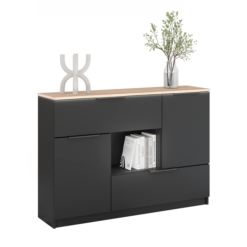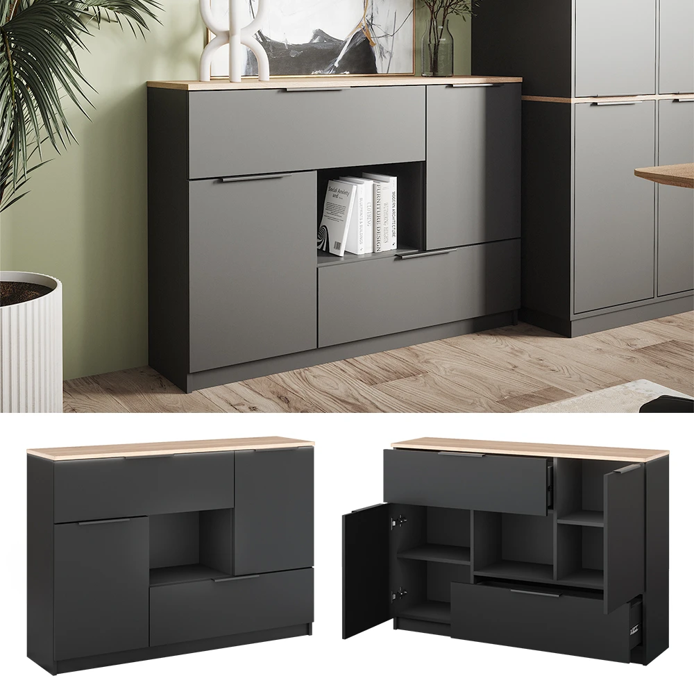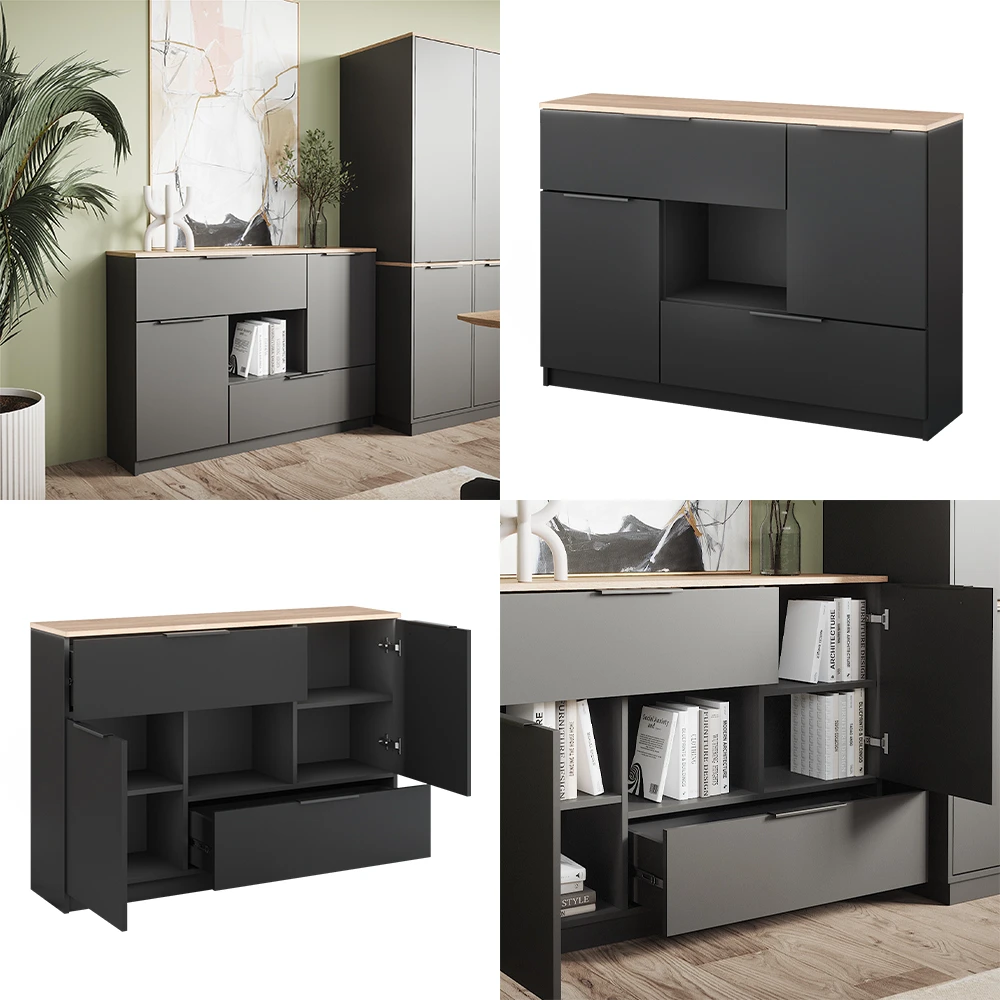 Sideboard „Betti“ Anthrazit/Sonoma 120 X 83.6 Cm 2x Tür, 2x Schublade Und 1x Offenes Fache Vicco