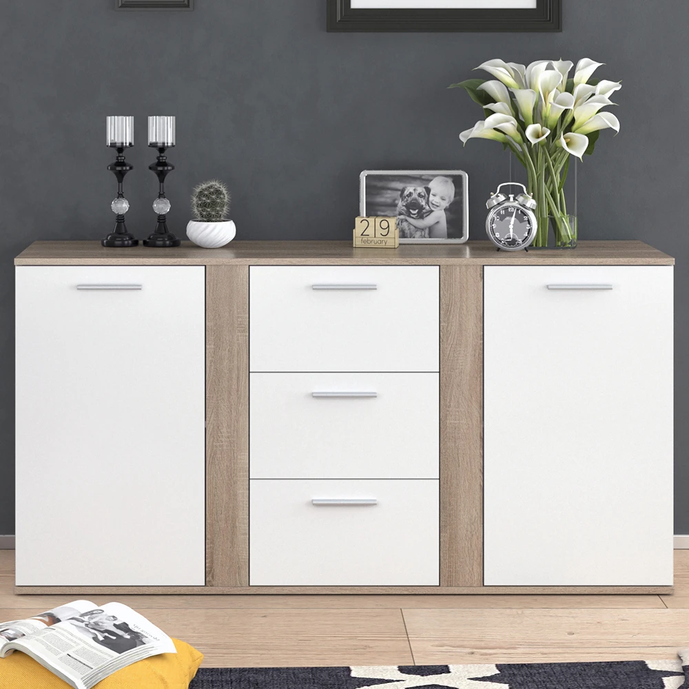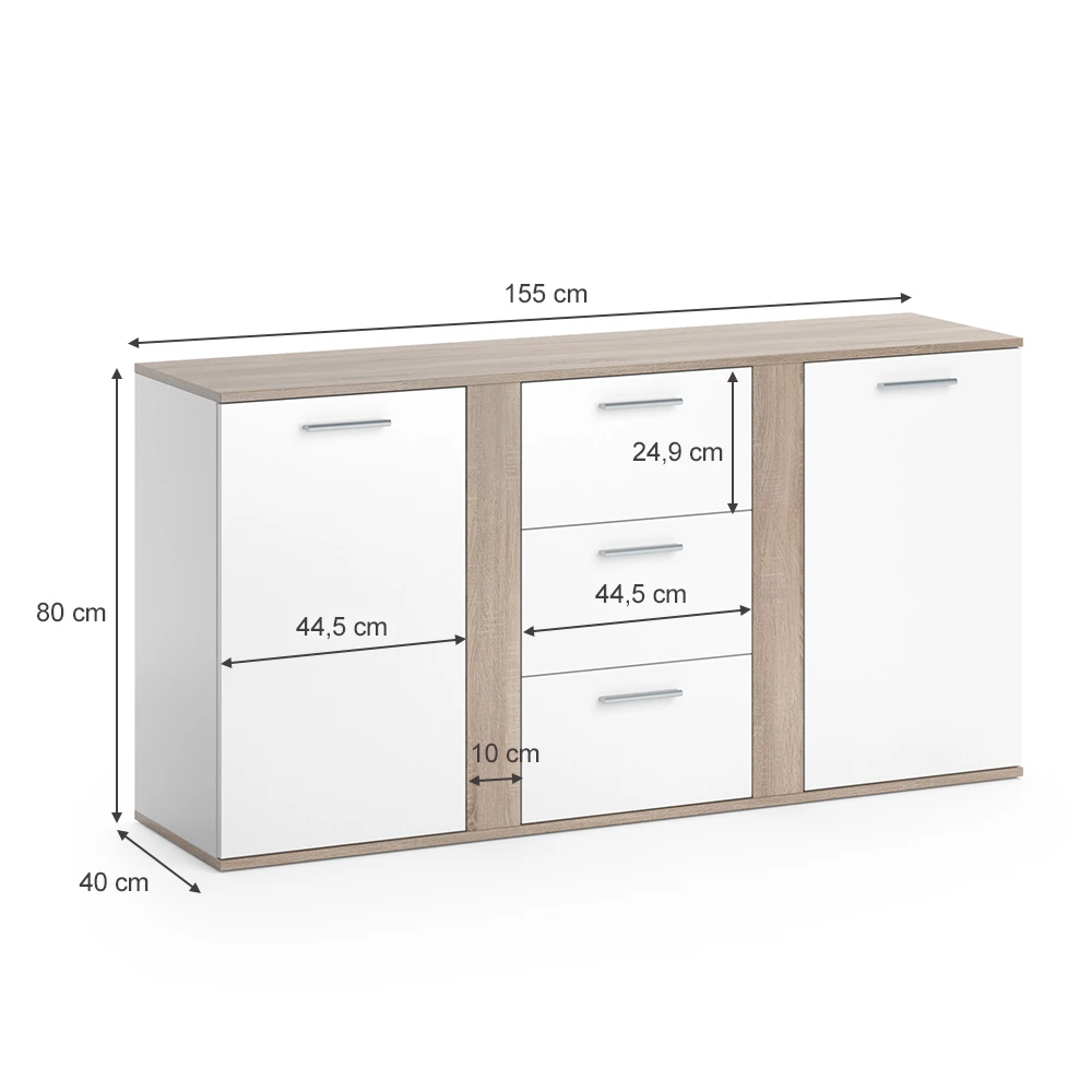 Das Sideboard Novelli ist ein wahrer Alleskönner und ein Must-Have für jeden Haushalt. Der schicke Kommodenschrank bietet reichlich Stauraum und eignet sich hervorragend für das Schlaf- oder Wohnzimmer. Mit seinen Schubladen ist das Sideboard nicht nur funktionell, sondern auch optisch ein Highlight. Ob als Anrichte oder Schubladenschrank, das Novelli-Modell ist Teil einer Serie mit weiteren Optionen und lässt sich somit perfekt in jeden Einrichtungsstil integrieren. Ein echtes Liebhaberstück, das nicht nur durch seine praktischen Eigenschaften, sondern auch durch sein ansprechendes Design überzeugt. Gönnen Sie sich dieses Schmuckstück und schaffen Sie sich ein gemütliches Zuhause zum Wohlfühlen.