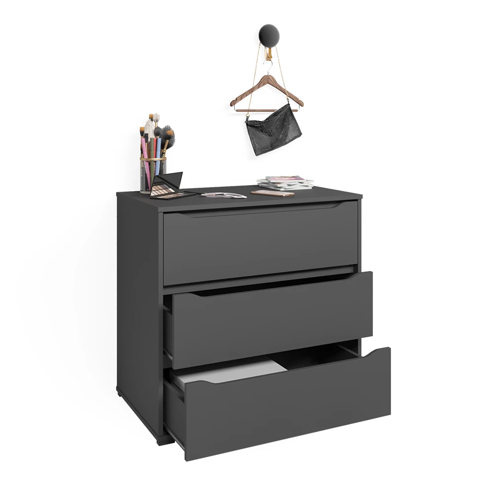 - MATERIAL: Der Schubladenschrank für das Schlafzimmer besteht aus pflegeleichter Spanplatte 16 mm, mit einer Melaminharzbeschichtung.