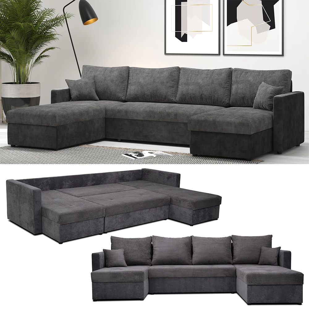 Das Sofa L Form ist ein wahres Multitalent! Mit seiner praktischen Schlaffunktion und dem integrierten Bettkasten verwandelt es sich im Nu in ein gemütliches Schlafsofa. Aber auch tagsüber macht es eine hervorragende Figur als stilvolle Wohnlandschaft. Dank des funktionellen Designs lässt sich das Sofa einfach ausziehen und bietet ausreichend Platz für Gäste oder eine entspannte Lounge-Atmosphäre. Zusätzlich sind vier große und zwei kleine Kissen im Lieferumfang enthalten, die für ein Plus an Gemütlichkeit sorgen. In der praktischen Aufbewahrungsbox lassen sich zudem Decken und Kissen platzsparend verstauen. Und das Beste: Das Sofa L Form kann mit anderen Möbelstücken kombiniert werden und passt sich so perfekt an Ihre Einrichtung an. Holen Sie sich jetzt das universale Sofa L Form nach Hause und genießen Sie Komfort und Funktionalität in einem!