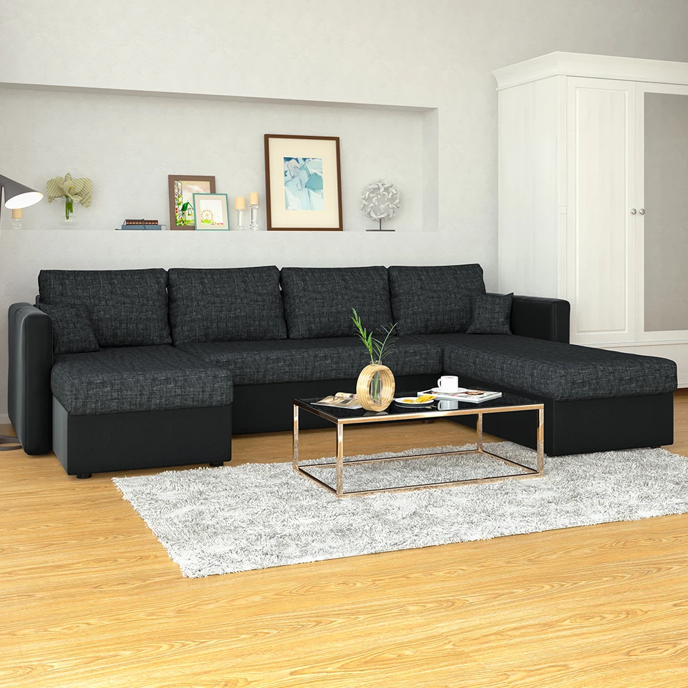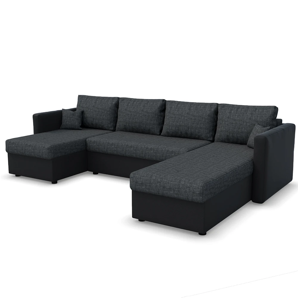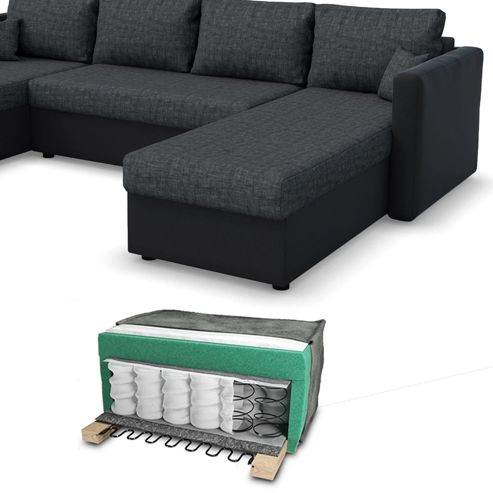 Mit dem Sofa U Form setzen Sie ein Statement in Ihrem Wohnzimmer! Das moderne Ecksofa vereint nicht nur ansprechendes Design mit hohem Komfort, sondern bietet auch praktische Funktionen. So verwandelt sich die Wohnlandschaft im Handumdrehen in ein gemütliches Schlafsofa mit Bettkasten und bequemem Schlafbereich. Perfekt für Gäste oder gemütliche Filmabende zu zweit. Auch der Sitzbereich lässt keine Wünsche offen und bietet ausreichend Platz für die ganze Familie. Zusätzlich können Sie in dem praktischen Bettkasten, Decken oder Zeitschriften verstauen. Mit den 4 großen und 2 kleinen Kissen wird das Sofa abgerundet und lädt zum Entspannen ein. Gönnen Sie sich jetzt das Sofa U Form und genießen Sie ein Wohnzimmer, das Wohnen und Entspannen in einem vereint.