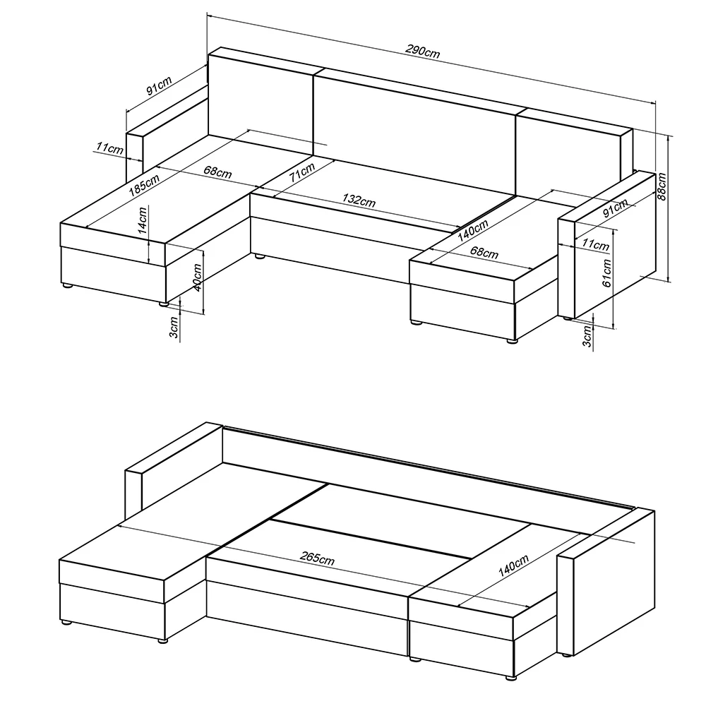 - MAßE: Das Ecksofa mit Schlaffunktion hat eine Breite von 290 cm, eine Höhe von 61 cm und eine Tiefe von 185 cm. Alle detaillierten Größen sind auf den Fotos angegeben.