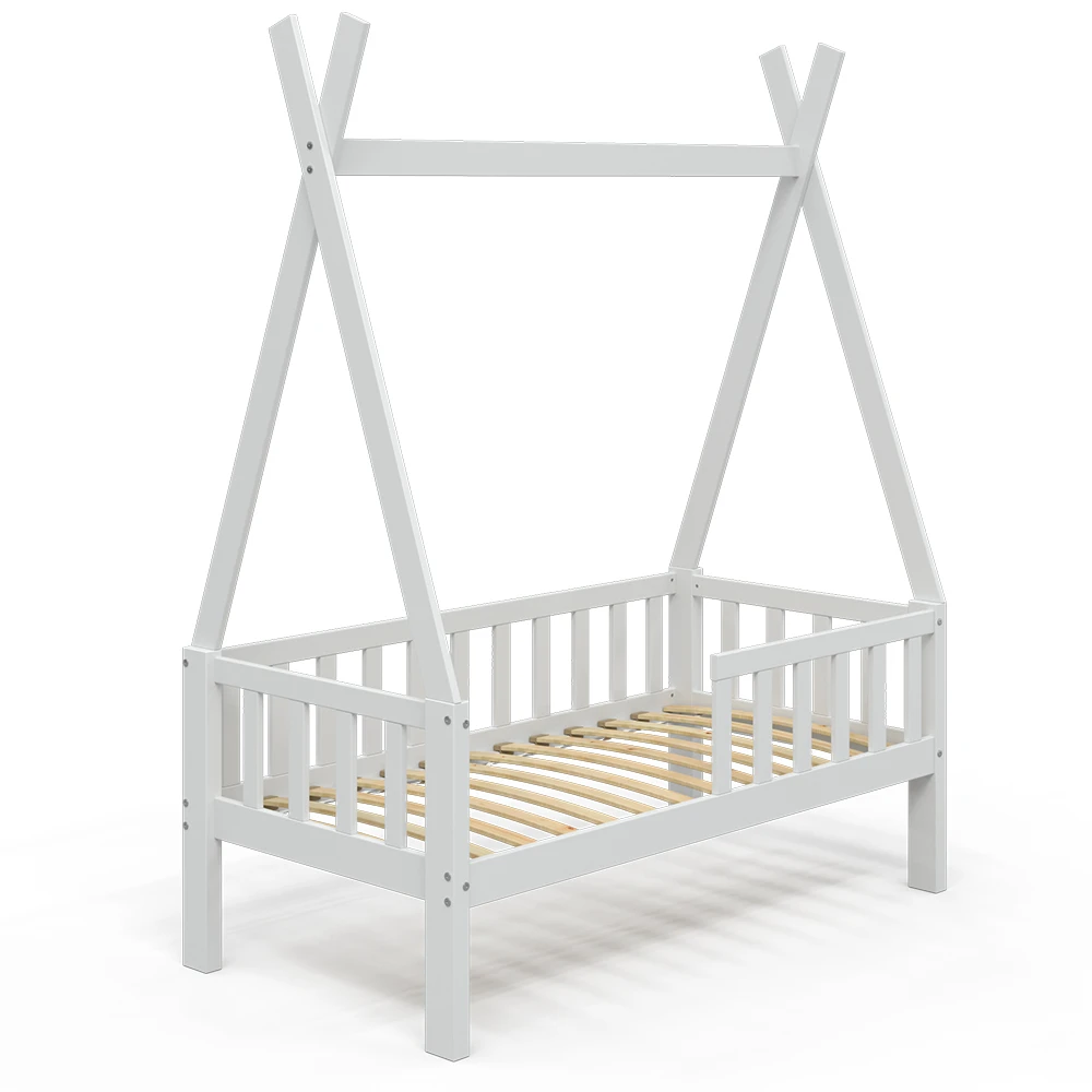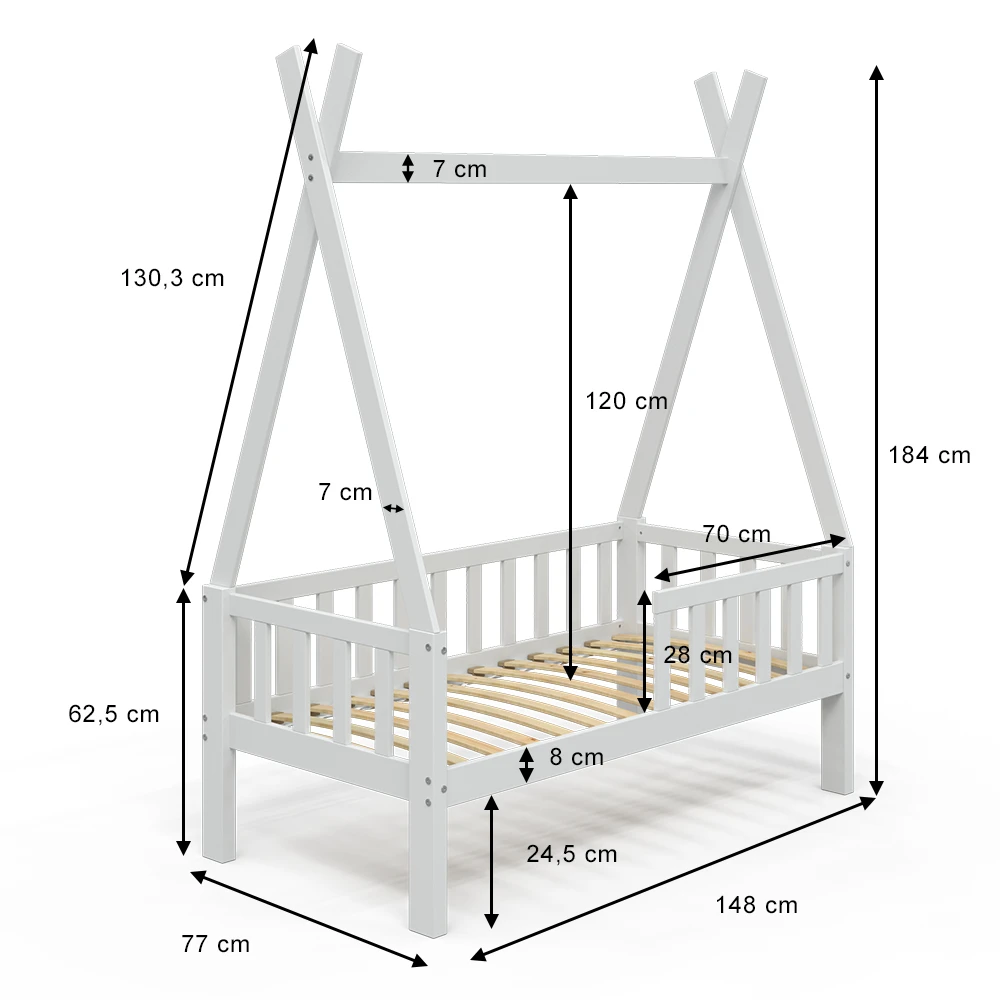 Das Tipi-Bett ist das perfekte Möbelstück für das Kinderzimmer! Mit seinem funktionellen und stilvollen Design dient es nicht nur als Bett, sondern auch als spannendes Spielbett und gemütlicher Rückzugsort. Die robusten Holzlatten sorgen für einen stabilen und sicheren Schlafplatz für Ihr Kind. Das Tipi-Bett lässt sich einfach mit anderen Möbelstücken kombinieren und verleiht jedem Kinderzimmer eine besondere Note. Lassen Sie sich von der Magie eines Tipis faszinieren und schenken Sie Ihrem Kind ein unvergessliches Schlaferlebnis!