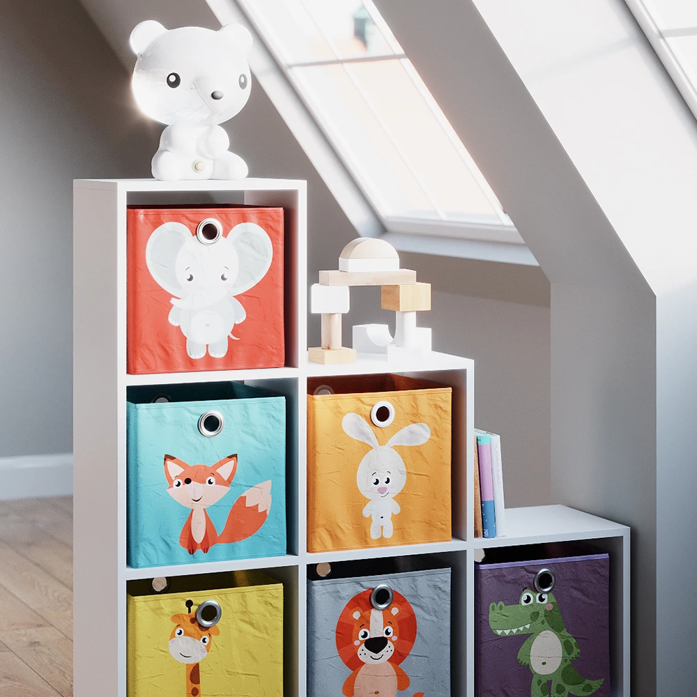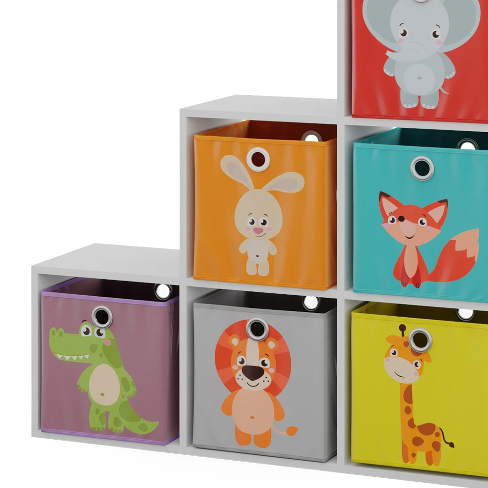 - LIEFERUMFANG: Treppenregal, 6x Faltbox, Montageanleitung, Montagematerial