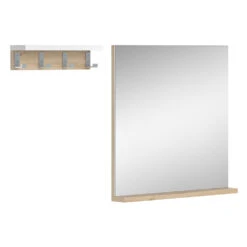 Henri ist der perfekte Begleiter für Ihr Badezimmer! Dieser Hängespiegel mit einem offenen Regal und einem Wandregal mit 4 Haken bietet nicht nur ausreichend Platz für Ihre Badutensilien, sondern ist auch ein echtes Design-Highlight. Das breite Spiegelglas gibt Ihnen ein vollständiges Bild von sich, während das Regal genügend Stauraum für Ihre Lieblingspflegeprodukte bietet.