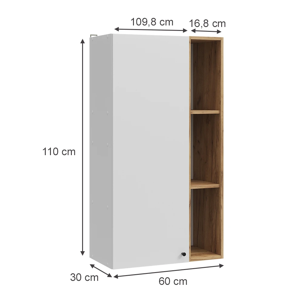 - MAßE: Das Bücherregal hat folgende Abmessungen: Breite: 60 cm, Höhe: 110 cm, Tiefe: 30 cm. Alle detaillierten Größen sind auf den Fotos angegeben.