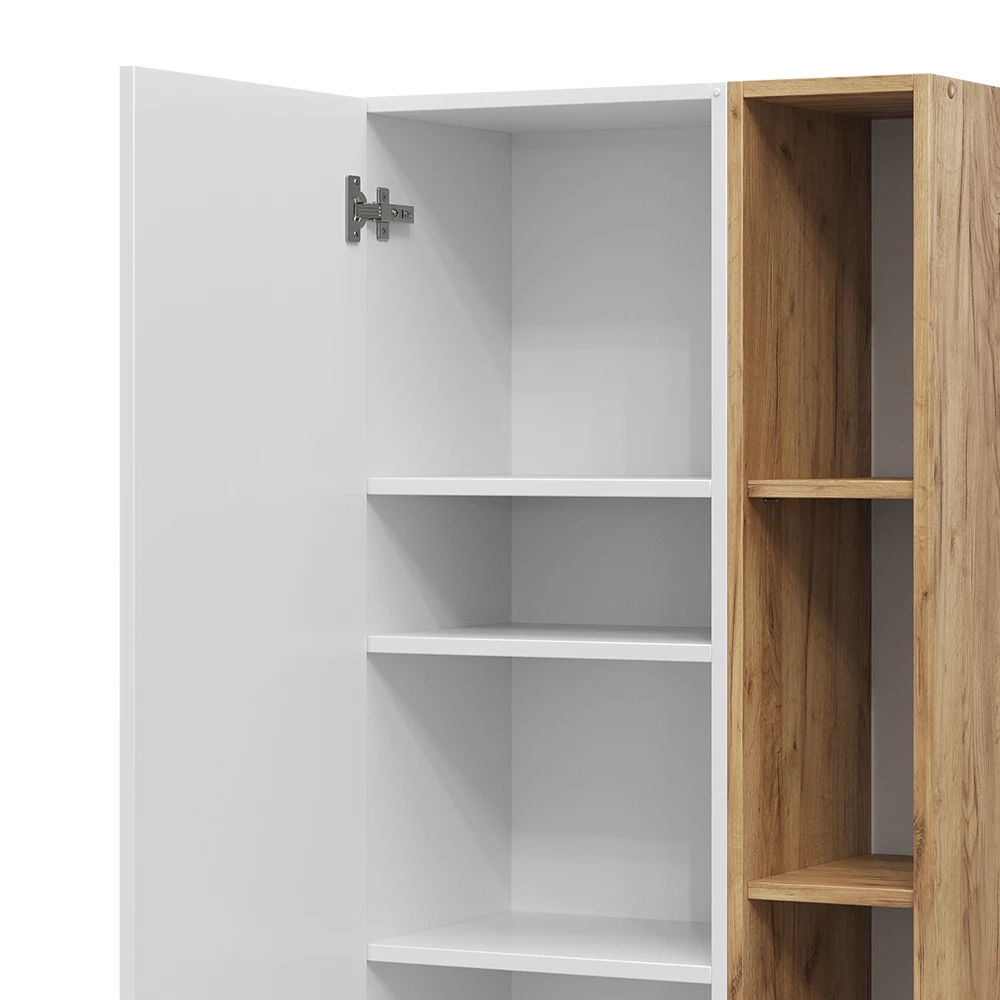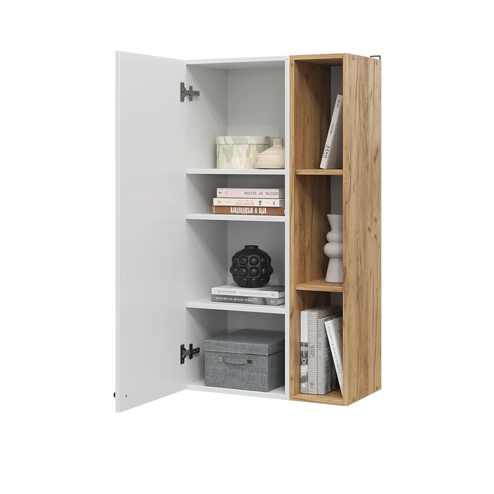 - Dieses moderne hängende Regal bietet viel Stauraum mit 4 geschlossenen Regalen und einer Tür und ist ein Blickfang in jedem Raum.