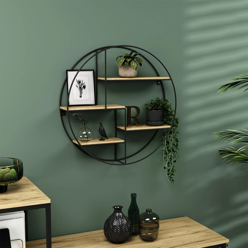 - Das Vicco Wandregal Fyrk, im modernen Industriestil, bietet vielseitige Aufbewahrung und Dekoration. Mit einem runden Design ist es ein schickes Hängeregal und eine elegante Wanddekoration zugleich.