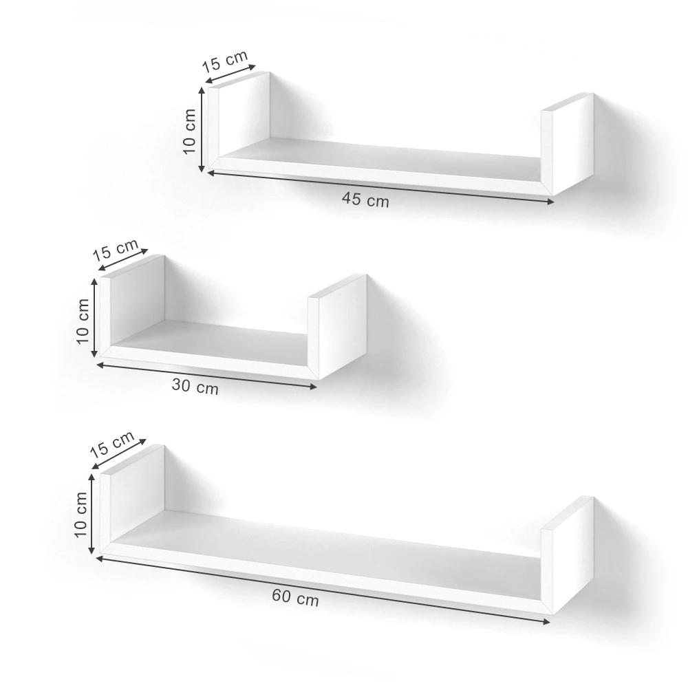 Holen Sie sich jetzt unser originelles und praktisches Wandregal-Set! Die 3 Regale sind perfekt für Bücher, Deko und alles, was Sie gerne aufbewahren möchten. Mit der mitgelieferten Wandhalterung können Sie das Regal einfach und sicher anbringen. Das offene Design des Regals sorgt dafür, dass Ihre Dinge immer griffbereit sind und sich zu jeder Zeit in Ihrem Wohnzimmer oder Büro gut präsentieren. Sie können das Wandregal-Set auch wunderbar mit anderen Möbelstücken kombinieren. Zögern Sie nicht mehr – bestellen Sie jetzt und verschönern Sie Ihre Wände!