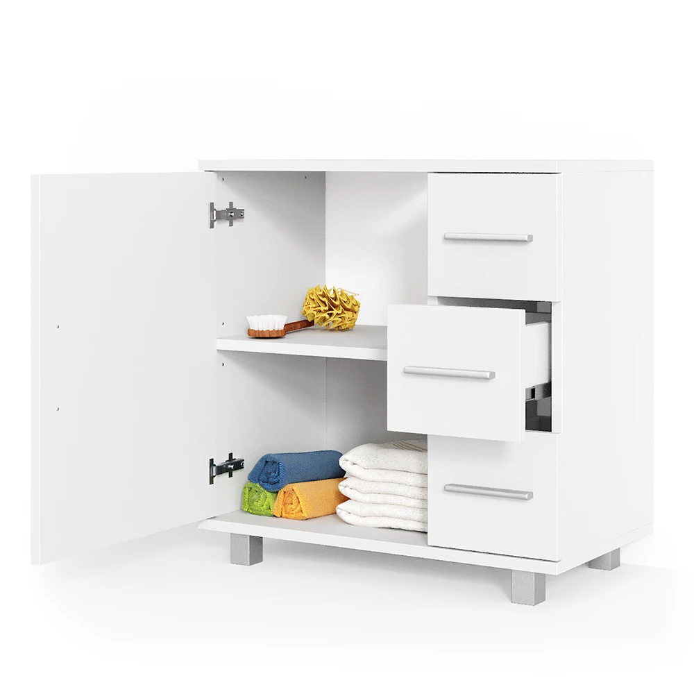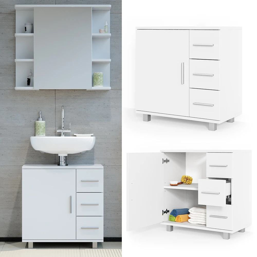 - Der Waschtischunterschrank mit Schubladen bietet eine perfekte Aufbewahrungslösung für Badezimmer. Mit Flügeltür und 3 Schubladen, sowie Aussparung für Siphon.