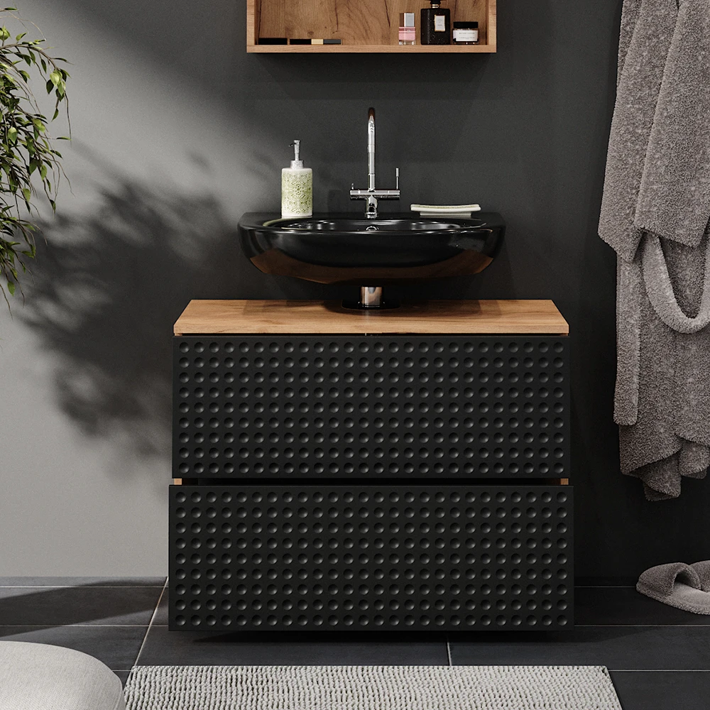 Der Waschbeckenunterschrank Irma ist der perfekte Unterschrank für Ihr Badezimmer! Mit seinem diskreten Stil und seinen zwei Schubladen bietet dieser Badunterschrank Stauraum für alle Ihre Badutensilien. Es gibt sogar bereits eine Aussparung für einen Siphon, damit sie direkt loslegen können. Der Irma-Waschtischunterschrank ist kompatibel mit anderen Produkten der Kollektion Irma und sorgt somit für ein einheitliches und harmonisches Aussehen. Dieses Möbelstück bietet reichlich Stauraum für Ihre Handtücher, Kosmetikartikel und Pflegemittel. Aber Irma ist nicht nur funktional, sondern auch ästhetisch ansprechend. Sie erzeugt eine warme und einladende Atmosphäre in Ihrem Badezimmer.