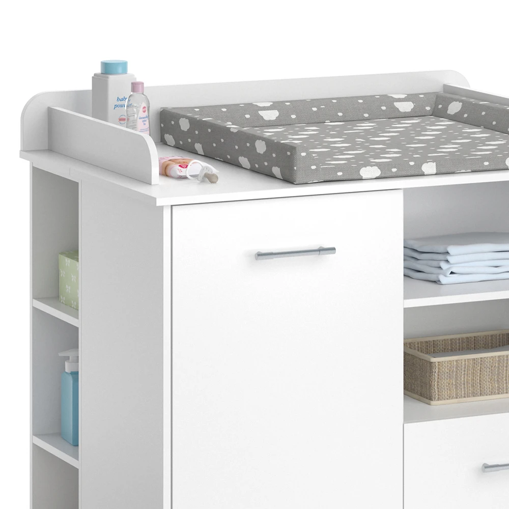 „Lea“ ist eine Möbelserie, die Babykommoden und Wohnzimmermöbel umfasst. Die Serie bietet Ihnen die Möglichkeit, einen praktischen und stilvollen Bereich für die Aufbewahrung von Babyutensilien zu schaffen und Ihren Wohnbereich gemütlich einzurichten.