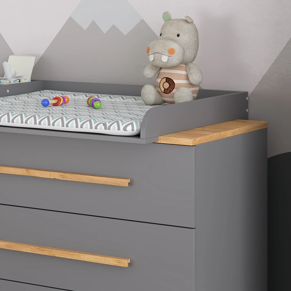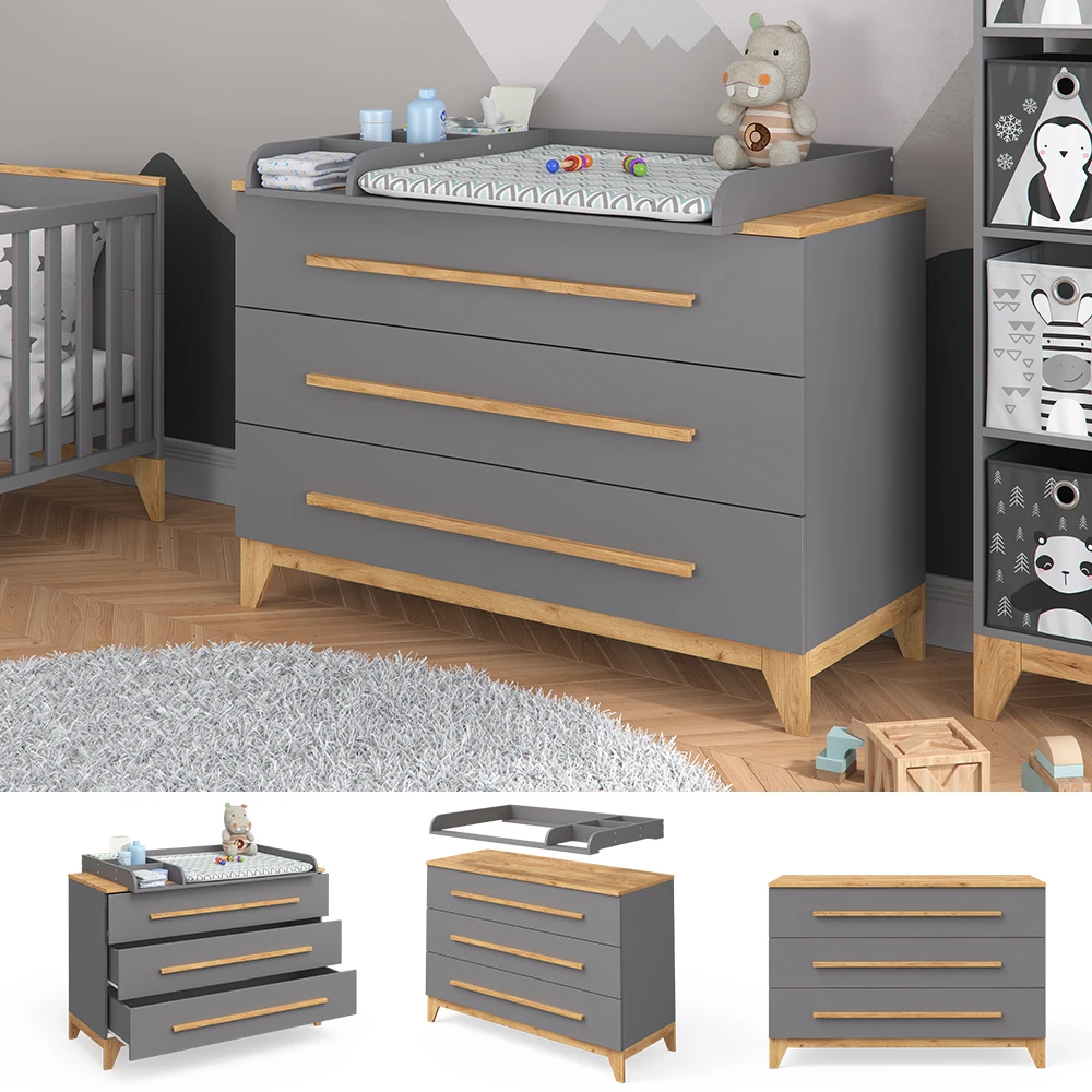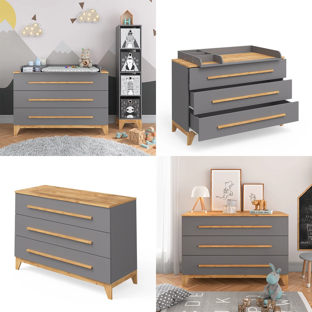- Mit dem Wickelaufsatz für die Kommode hast du Platz für alles, was du beim Wickeln brauchst: 3 große ausziehbare Schubladen und stilvolle Holzfüße.