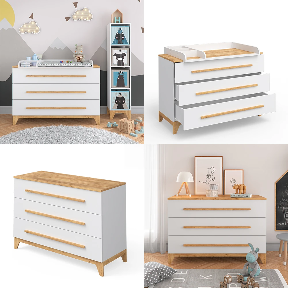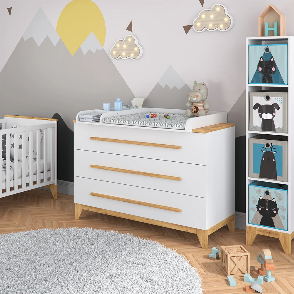 - Mit dem Wickelaufsatz für die Kommode hast du Platz für alles, was du beim Wickeln brauchst: 3 große ausziehbare Schubladen und stilvolle Holzfüße.