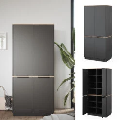 Kleiderschrank „Betti“ Anthrazit/Eiche 82 X 179 Cm Mit 4 Türen Vicco